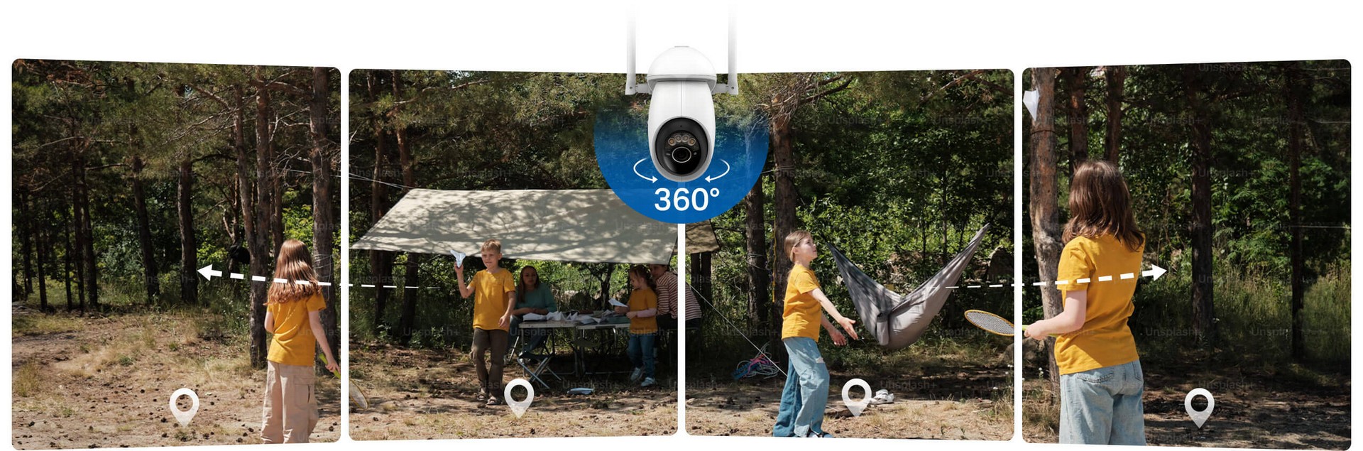 Fang optimale opptak i ulike miljøer, inkludert landbrukseiendommer, fritidsområder, byggeplasser og ferieresidenser. Kameraet og solcellepanelet kan integreres som én enhet for et estetisk uttrykk, eller kobles sammen via en 4-meters kabel for å optimalisere soleksponeringen.