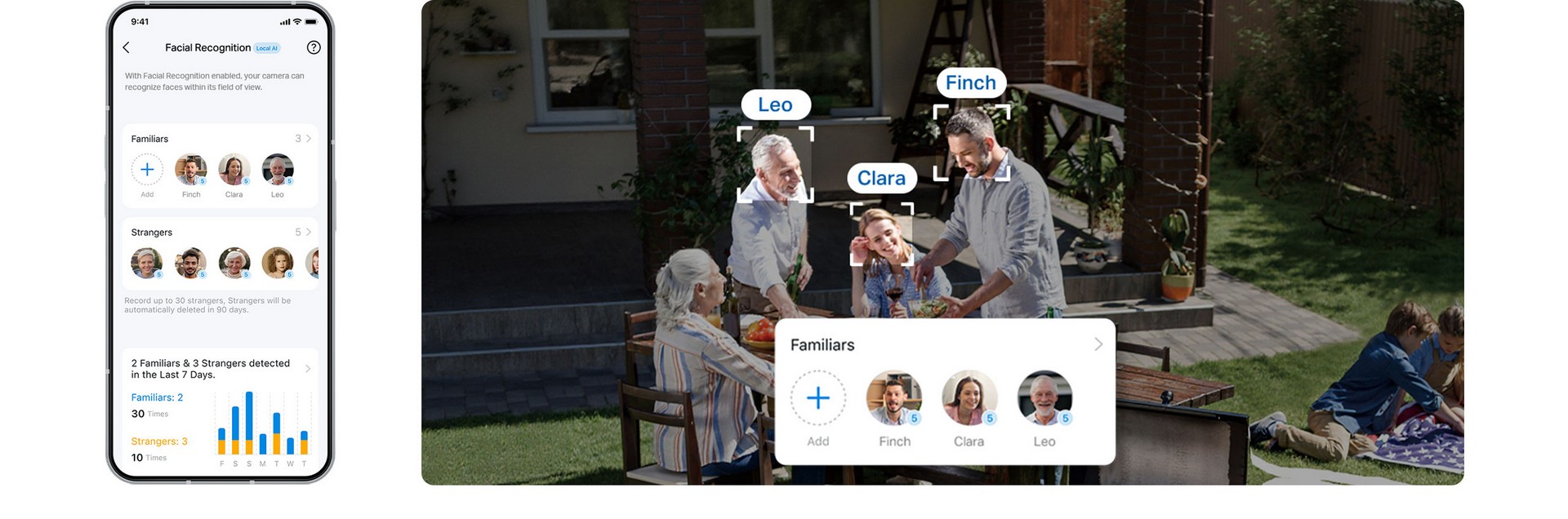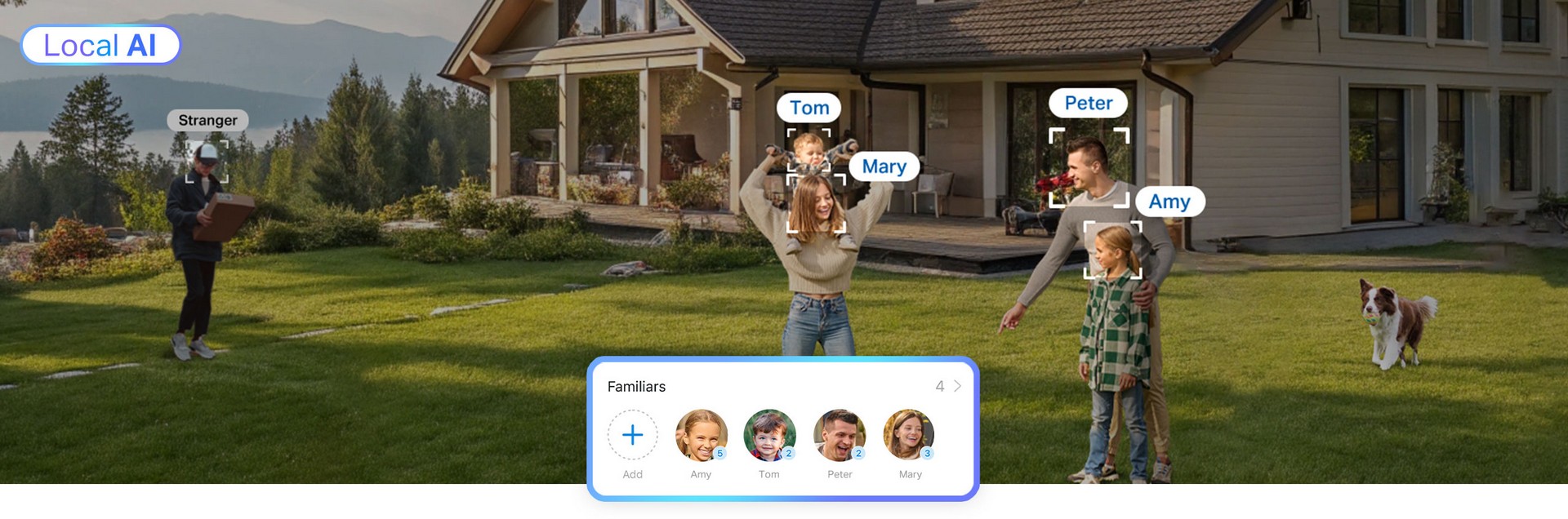 Systemet har kostnadsfri, avansert AI som gjenkjenner og kategoriserer personer som fremmede, familiemedlemmer eller bekjente, og reduserer dermed unødvendige varsler. All ansiktsdata behandles lokalt uten overføring til skyen, noe som sikrer personvern og sikkerhet.