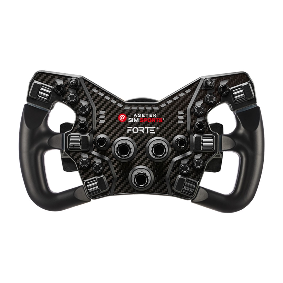Inspirert av ekte Formel- og LMP-biler, er Forte® Formula button box basert på et sprøytestøpt chassis laget av en kompositt av karbon, glass og plast, kombinert med et metallspindelgrensesnitt for et stivt, ikke-bøyelig ratt, som lar brukeren bytte eller oppgradere håndtakene for maksimal tilpasning.