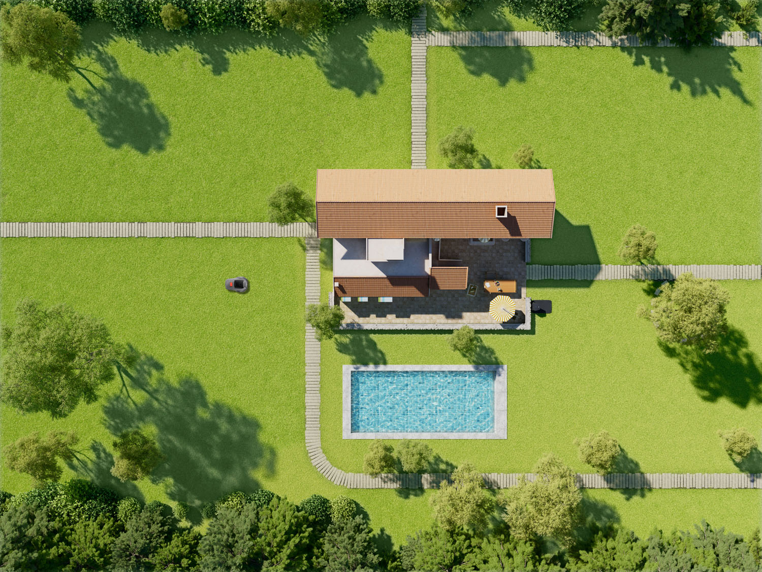 UltraEyes™ 1.0 er utviklet for å gi pålitelig og stabil navigering i hagemiljøer. De doble kameraene analyserer plenens overflate, kanter og objekter kontinuerlig og tilpasser gressklipperens hastighet og bevegelser etter omgivelsene. Systemet arbeider løpende for å identifisere gressflater og skiller dem fra gangveier, rabatter og faste hindringer.