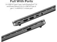 | Grensesnittdetaljer | 2 x USB 3.2 Gen 1, HDMI, 2 x USB-C 3.2 Gen 1 (supports DisplayPort Alt Mode) (Power Delivery), Hodetelefons/mikrofons-kombinasjonsjakk |