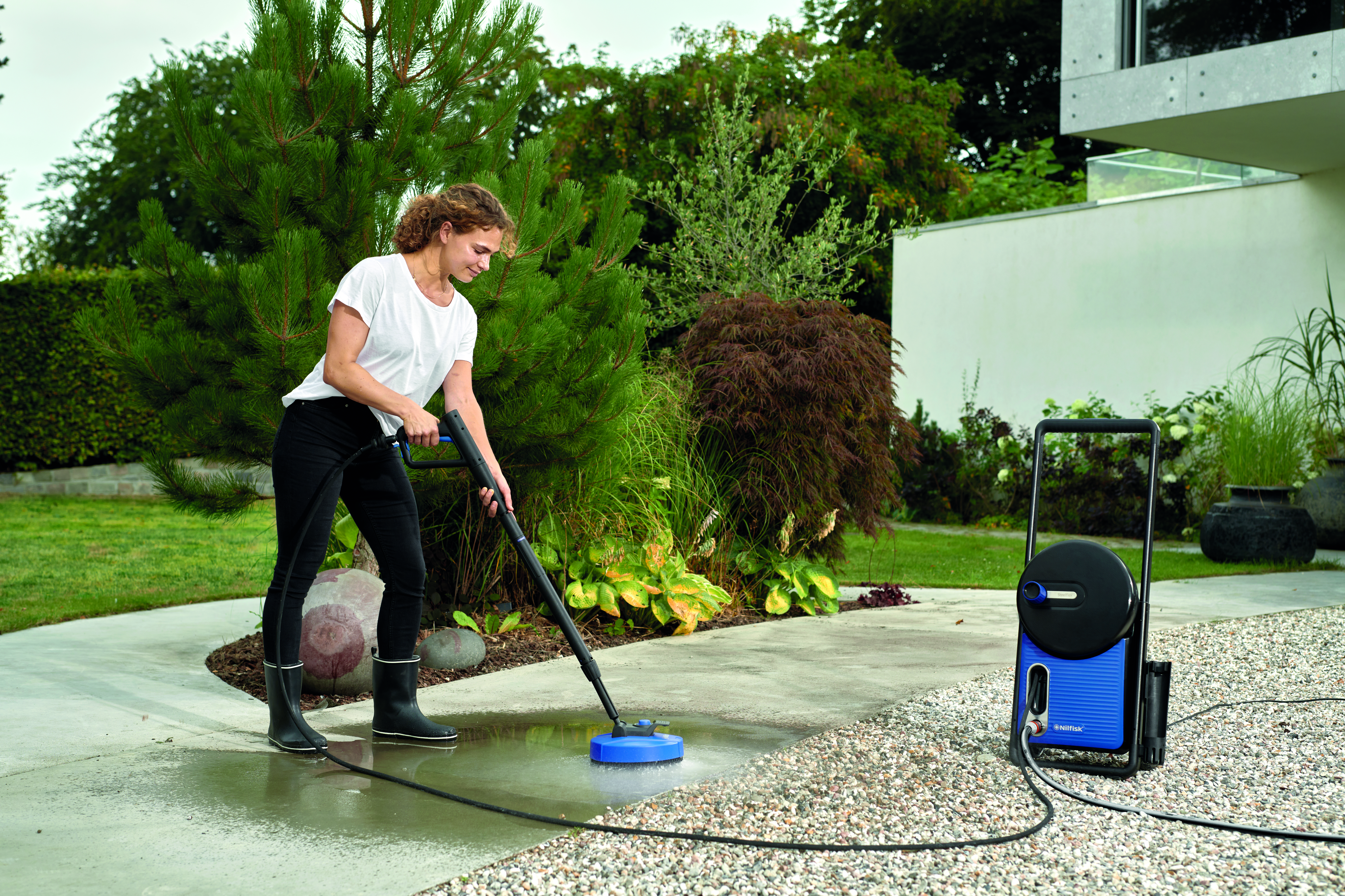 Gi uteområdet, innkjørselen eller gjerdet nytt liv med Nilfisk Patio Cleaner. Den er utviklet for rask, jevn og effektiv rengjøring av større flater – uten sprut og unødvendig søl.