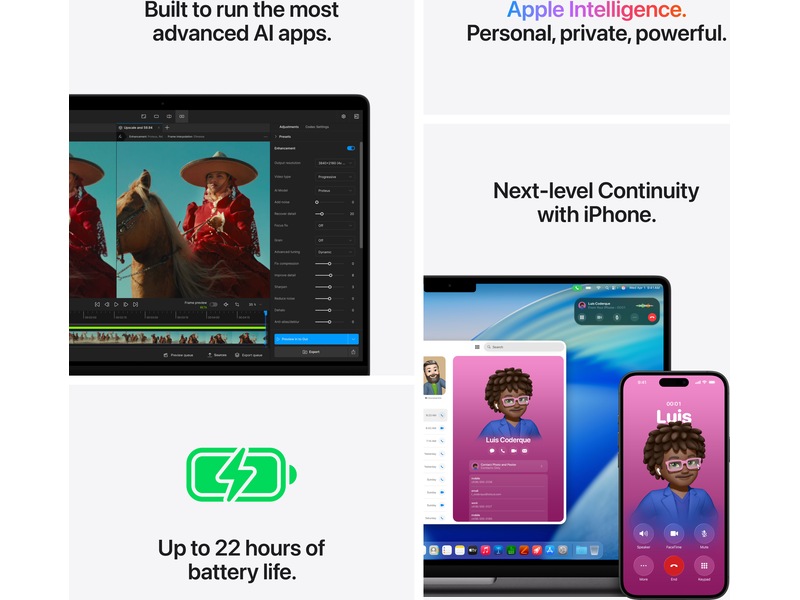 • BYGGET FOR AI – Apple-chipene, og alle nøkkelkomponentene som driver dem, er designet for å kjøre krevende AI-oppgaver på enheten, som inferensoppgaver og trening av store språkmodeller. Og Apple Intelligence hjelper deg å skrive, uttrykke deg og få ting gjort raskt, med banebrytende personvern i hvert steg.(3)