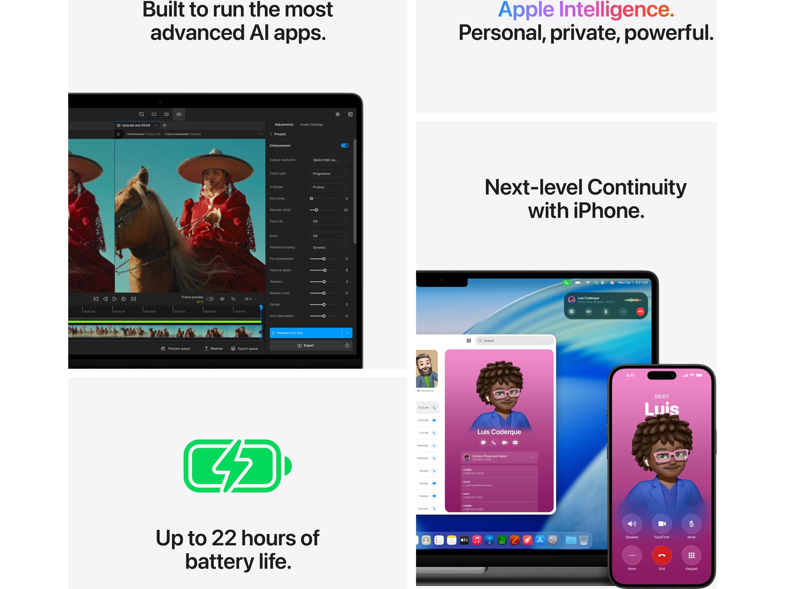 BYGGET FOR AI – Apple-chipene, og alle nøkkelkomponentene som driver dem, er designet for å kjøre krevende AI-oppgaver på enheten, som inferensoppgaver og trening av store språkmodeller. Og Apple Intelligence hjelper deg å skrive, uttrykke deg og få ting gjort raskt, med banebrytende personvern i hvert steg.(3)
