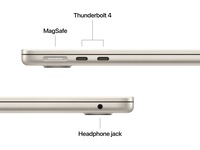 • KOBLE TIL ALT – MacBook Air har to Thunderbolt 4-porter, en MagSafe-ladeport, en hodetelefonutgang – samt Apple N1-chip for trådløs tilkobling med Wi-Fi 7(4) og Bluetooth 6. Og den støtter opptil to eksterne skjermer.