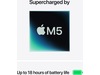 • SUPERKREFTER FRA M5 – Med raskere CPU og samlet minne gir M5 enda bedre ytelse og flyt i apper, slik at multitasking og kreative arbeidsflyter går lekende lett. En kraftig Neural Engine og neste generasjons GPU med Neural Accelerators gir et solid grunnlag for bruk av AI.