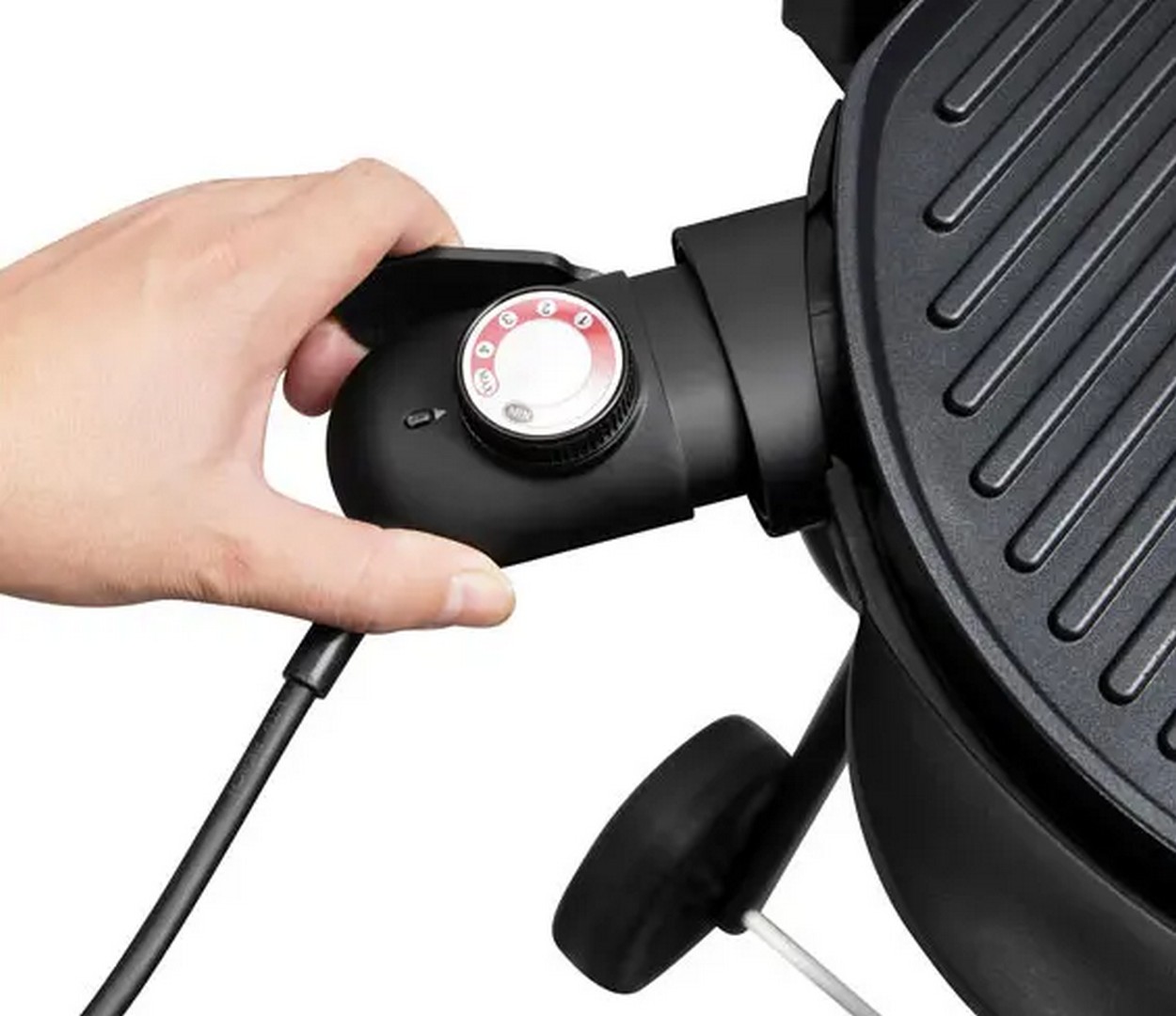 Grillen har en effekt på 2 000–2 400 W, som du styrer ved å skru på termostaten integrert i strømledningen. Termostaten kan enkelt kobles ut av grillen når den ikke er i bruk, som gjør at bordgrillen kan bli helt frigjort fra ledninger og stativ og oppbevares uten en oppkveilet strømkabel rundt seg. Selve stativet kan også brettes sammen, slik at grillen tar minimal plass også fastmontert i stativet. I sammenfoldet tilstand måler hele grillen 100 x 56 x 38 cm, og får fint plass i bod eller garasje.