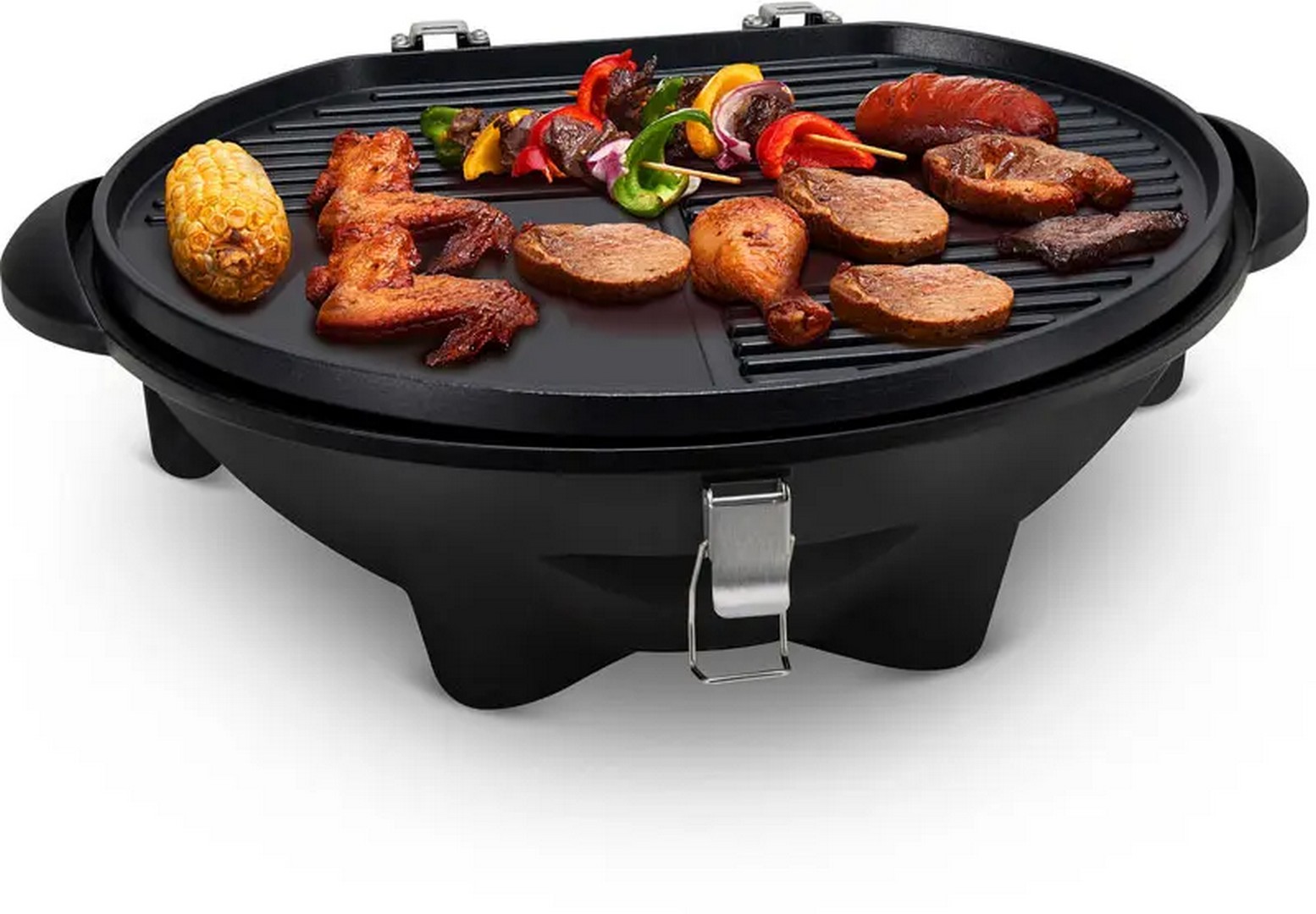 Når dere er samlet på verandaen med venner og familie, er det ekstra hyggelig å kunne sette grillen på bordet og grille sammen. AABQ Electric Grill lar deg fjerne både lokk og vogn, slik at dere kan lage rykende fersk grillmat rett på bordet, og holde varmen rundt grillen selv når sola går ned. Fordelen med en elektrisk grill som denne er at den også kan brukes innendørs, året rundt. Uten stativ måler den elektriske grillen 54 x 41,5 cm, med en høyde på 28,5 cm.