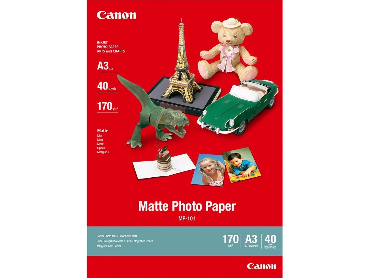 Matt fotopapir som er velegnet til fotoutskrifter eller mer kreativt bruk som kalendere, gratulasjonskort eller lignede. MP-101 er et rimelig fotopapir og et matt alternativ til Glossy Photo Paper. Vekt 170g.
