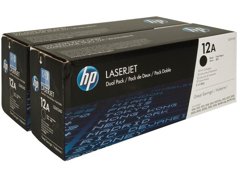 - Kjøp 2 pack og spar 10%.Denne topakningen med svarte HP 12A-tonerkassetter gir skarpe, profesjonelle og effektive utskriftsresultater med pålitelig ytelse - Fordi den er laget for å gi definert grafikk og tydelig tekst, kan denne tonerkassetten garantere utførelse av høy kvalitet - Den er enkel å resirkulere og er garantert fri for skader og feil i garantiperioden - Forventet levetid (sider): 2000 ved 5% dekning - Kompatibel med: LaserJet 1010, 1010w, 1012, 1015, 1018, 1018s, 1020, 1020 Plus, 1022, 1022n, 1022nw, 3015, 3020, 3030, 3050, 3050z, 3052, 3055, M1005 MFP, M1319 MFP, M1319f MFP