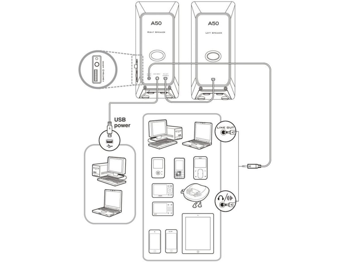 Kablet fjernkontroll for å slå PÅ/AV og justere volumet enkelt. Produkt: Produktbeskrivelse: CREATIVE A50 2.0 SPEAKER USB BLACK SYS SPKR A50 CLE-R N BK Beskrivelse: Creative A50 - Høyttalere - for PC - svart EAN-Kode: 5390660184673 Produsentens garanti: 24 måneder - Bring-In Warranty Generelt Produkttype: Høyttalere - for PC Egenskaper: Bassrefleks Eksteriørfarge: Svart Høyttalersystem Systemkomponenter: 2 høyttalere Høyttalertype: Aktiv Magnetskjold: Ja Forsterker: Integrert Kontroller: Strøm på/av, volum Koblinger Koplingstype: Lydinngang (minijack stereo 3,5 mm) Strømforsyning Strømkildetype: AC-strømadapter Alternativer: USB-drevet Mål og vekt Dimensjoner (BxDxH) / vektdetaljer: Høyttaler for venstre kanal: 7.4 cm x 8.3 cm x 16.3 cm / 239 g