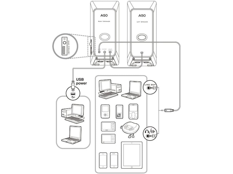 Høyttalere - for PC CREATIVE A50 2.0 SPEAKER USB BLACK 51MF1675AA001