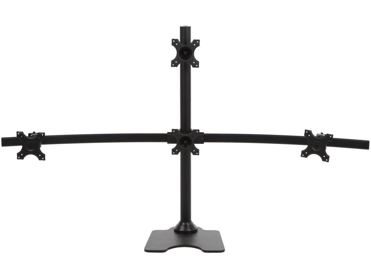 iiglo Quadra skjermstativ lar deg montere fire skjermer sammen på skrivebordet. Dette gjør at du får mer utnyttbar plass på skrivebordet, slik at du kan holde deg produktiv og organisert. Dette festet kan plasseres frittstående med et stabilt stativ eller festes sikkert med bolter til skrivebordet ditt. Det leveres med 75/100 mm VESA-plater, som gjør det enkelt å installere de fleste skjermer på 13–27".