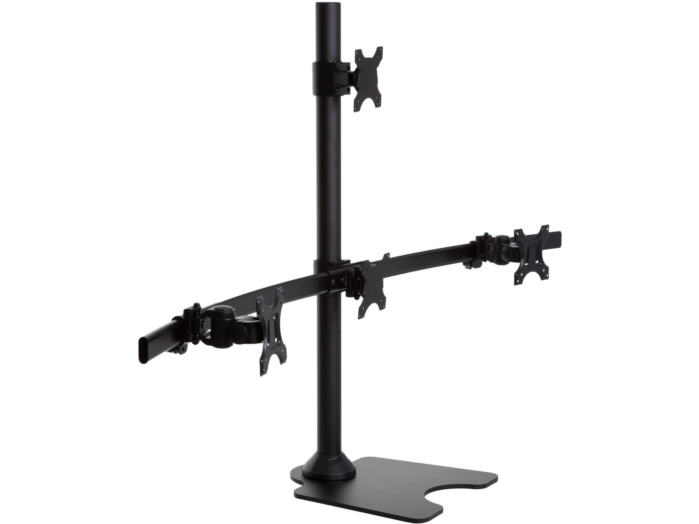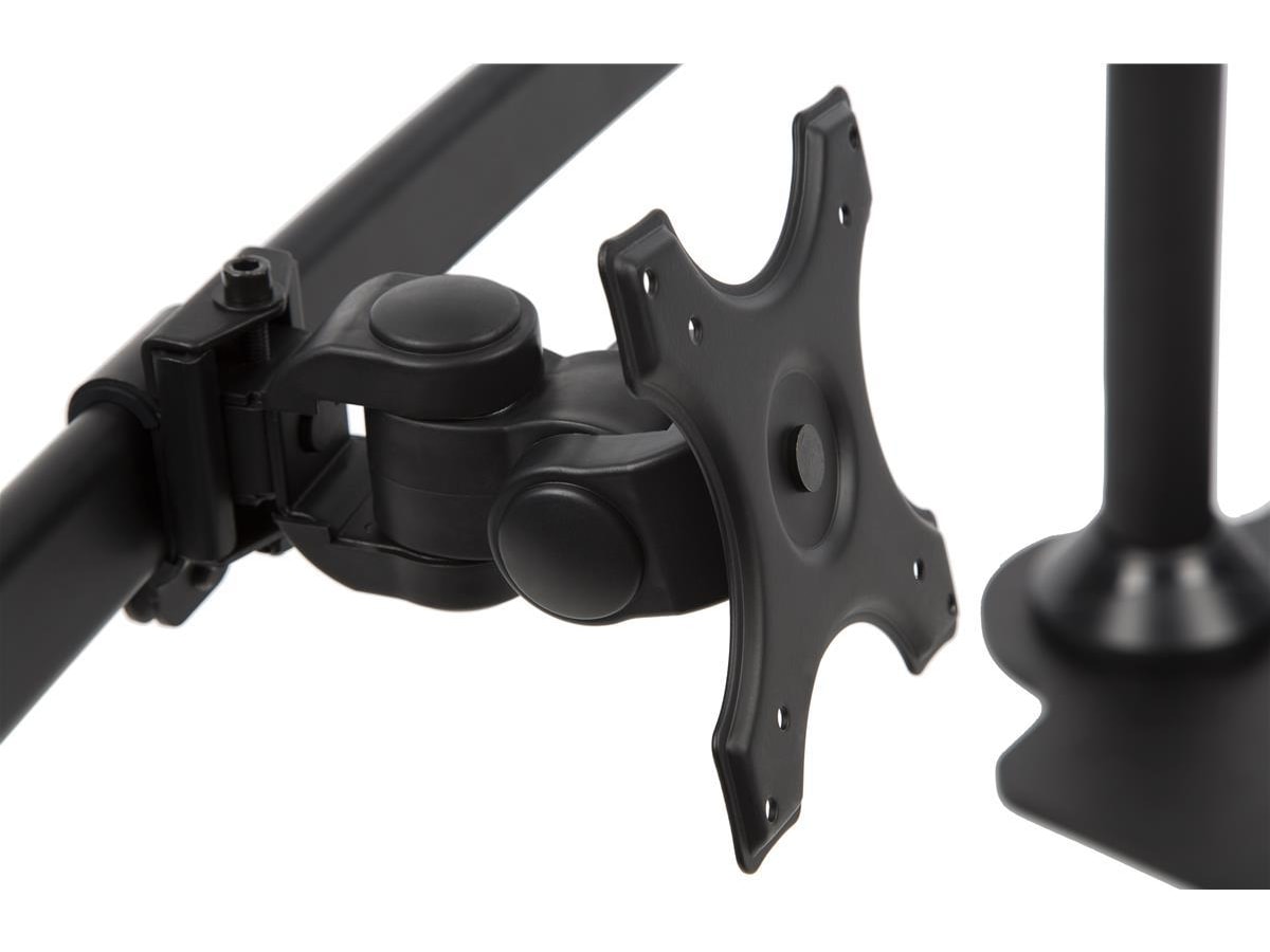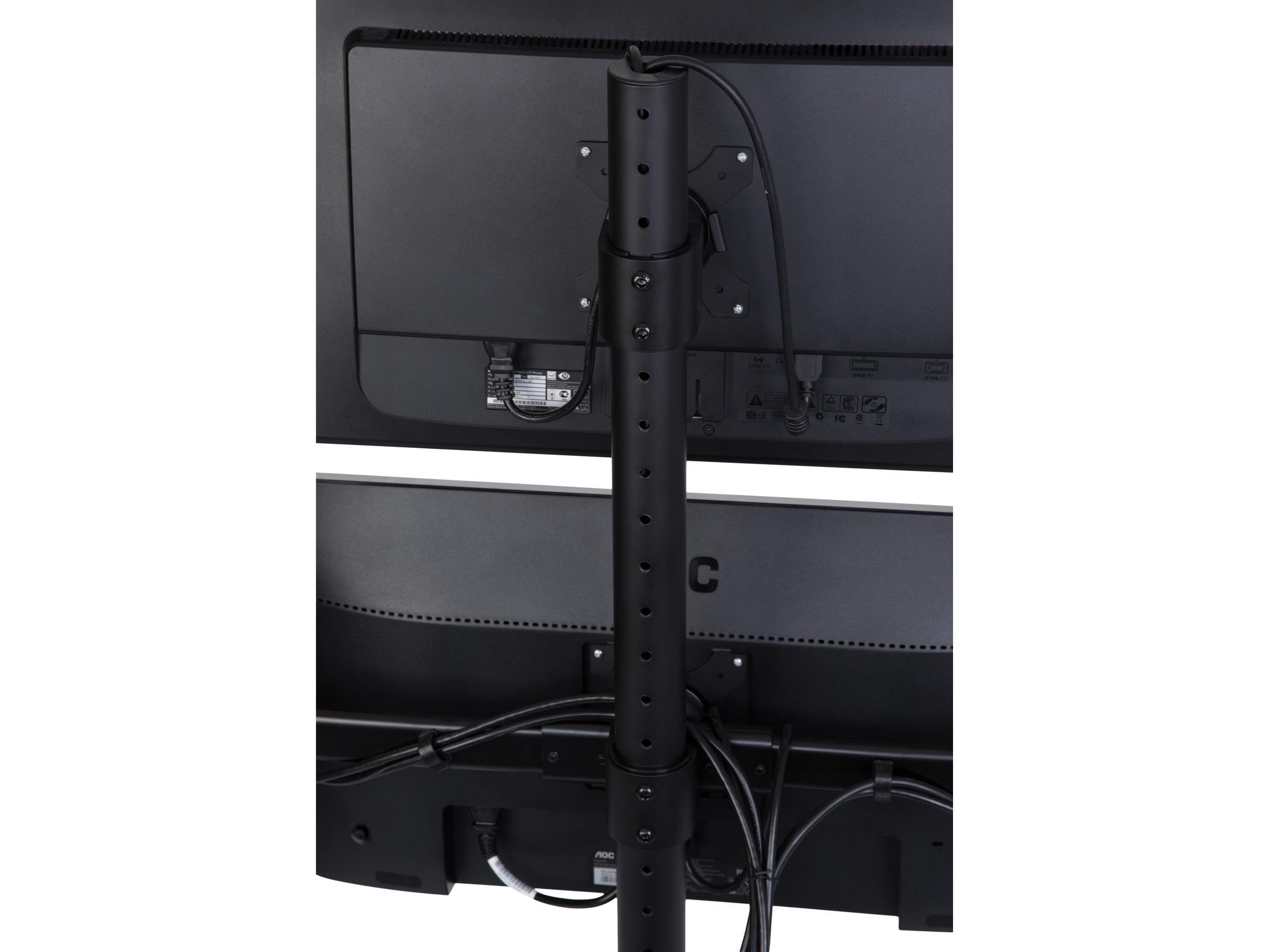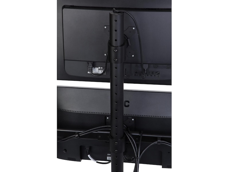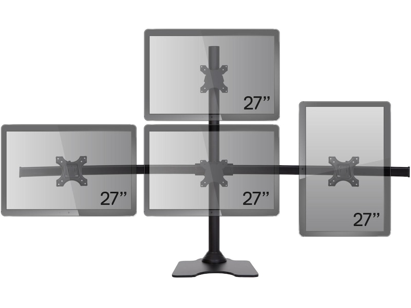 Dette skjermstativet har roterbare 75/100 mm VESA-plater. Det lar deg sette skjermene i enten liggende (horisontal) eller stående visning (vertikal).