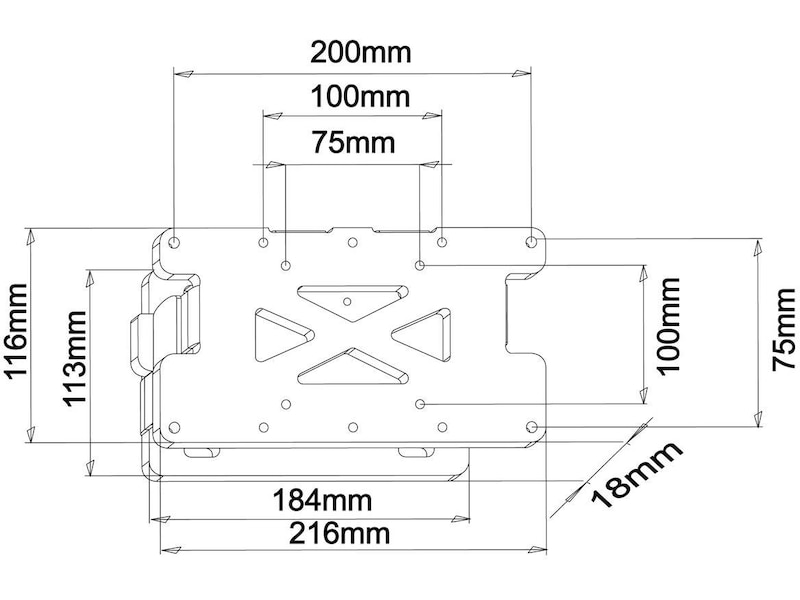 En enkel opphengsløsning for skjermer med VESA feste opp til 200x100. Bygger lite og er meget enkelt å montere.