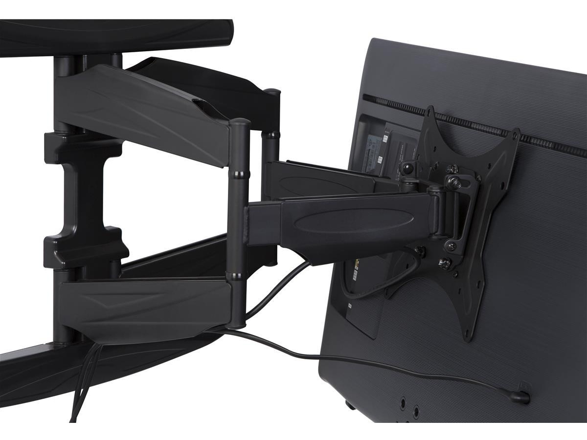 Dette to-armede veggfeste lar deg tilte og vinkle din TV i optimal visningsvinkel. Med mulighet å dra ut TV ut hele 49,6 cm fra veggen får du stor fleksibilitet. Det er enkelt å komme til bak for å montere kabler og lett å tilte - dette et meget brukervennlig veggfeste for større TVer eller public displays. Armene kan foldes helt sammen slik at feste kun bygger 5,3 cm ut fra vegg. Du kan velge om du vil ha flatskjermen i landskap- (horisontal), eller portrettvisning (vertikal). Veggfestet kommer med to deksler for å skjule veggskinnene.