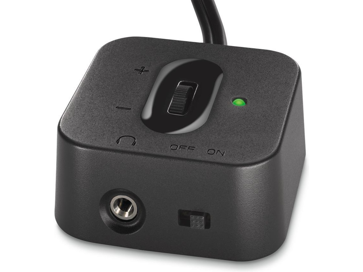 Juster bassen etter akustiske behov med den separate kontrollknappen på baksiden av basshøyttaleren. - Lytt uforstyrret