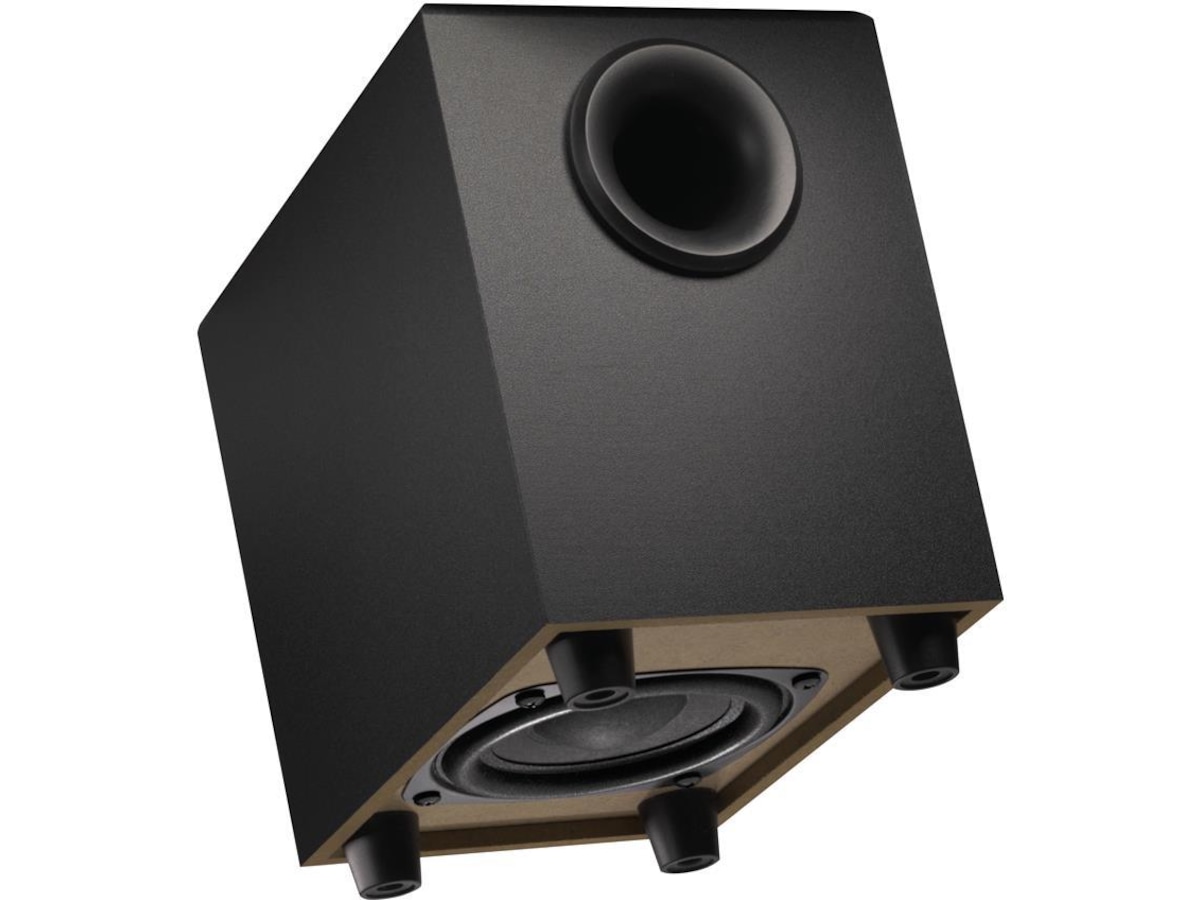 Beskrivelse Følbar fyldig bass. En nedovervendt basshøyttaler med 4-tommers element sikrer en rik bassopplevelse med disse 2.1-høyttalerene.