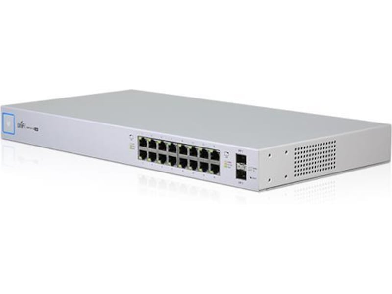 Svitsjen 16 PoE 150W (US 16 PoE 150W), en fullt administrert svitsj med (16) GbE RJ45-porter og (2) 1G SFP-porter. Hver av portene på svitsjen kan gi enten PoE+ eller kan konfigureres, 24 V passiv PoE til UniFi-tilgangspunkter eller andre PoE-enheter. Denne svitsjen kan overvåkes eller konfigureres fra hvor som helst med den kraftige, intuitive nettapplikasjonen og mobilappen UniFi Network.