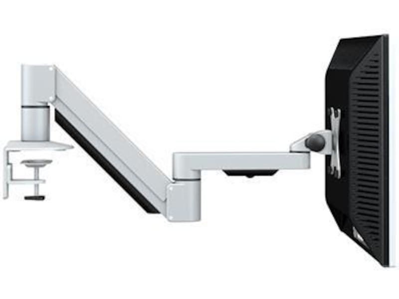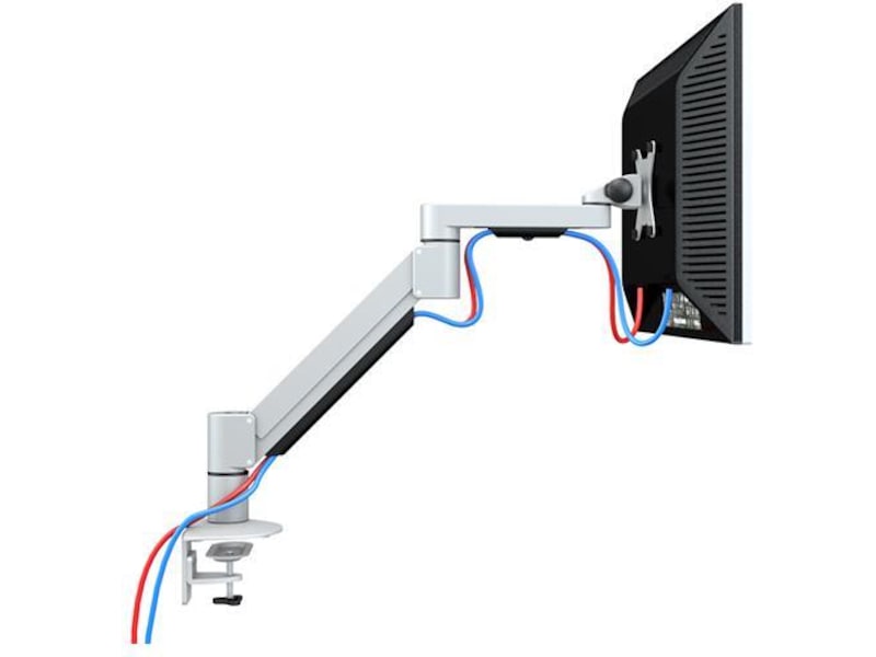 Monitorarmen kommer med både klemmefeste og gjennomgående feste, noe som gjør det fleksibelt å plassere skjermen på bordet. Alle ledd på armen er utstyrt med settskruer slik at skjermen kan låses i fast posisjon.
