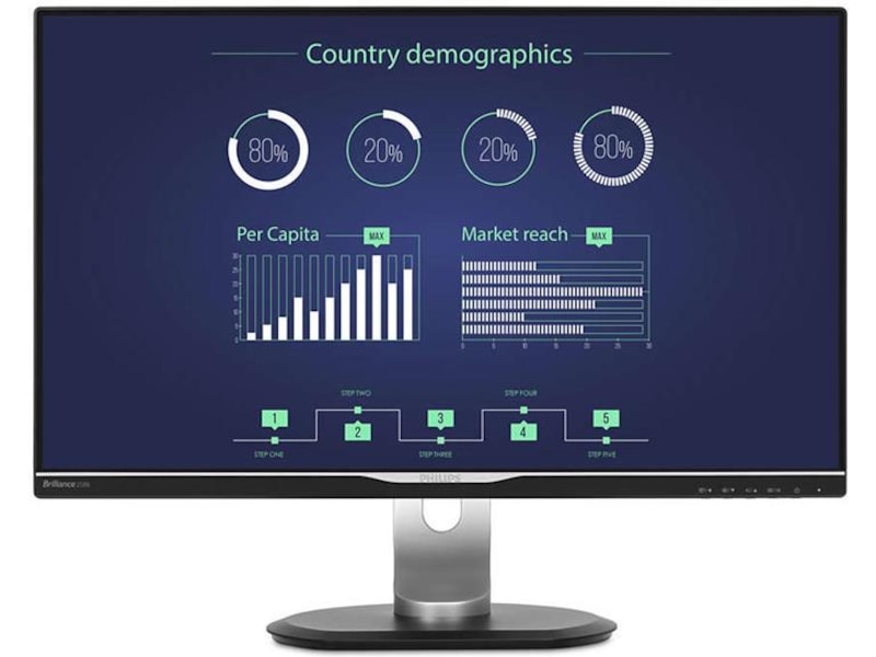 The Philips AH-IPS LED display using 65% post consumer recycled plastics and PVC, BFRfree is ideal for eco-friendly productivity.