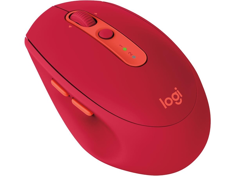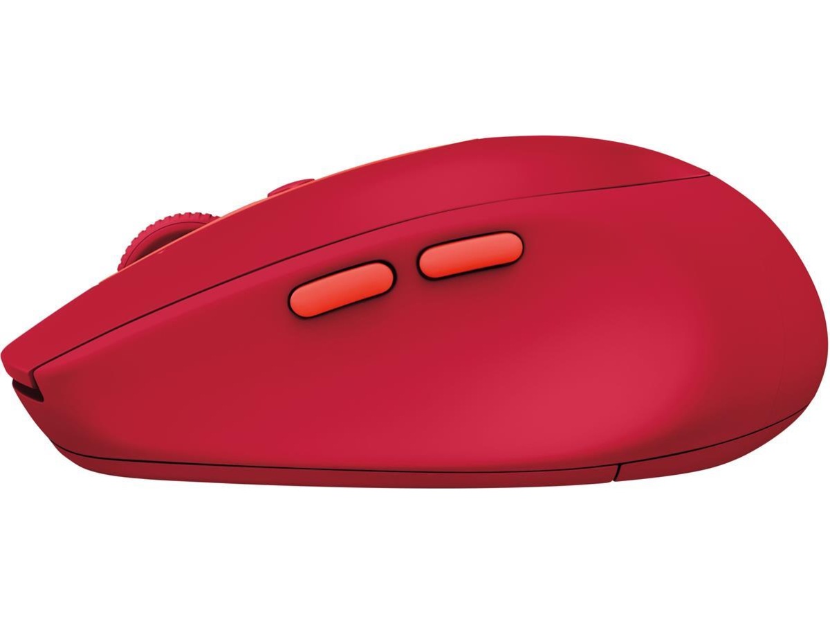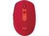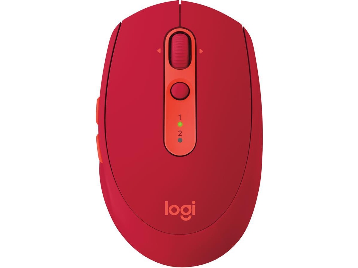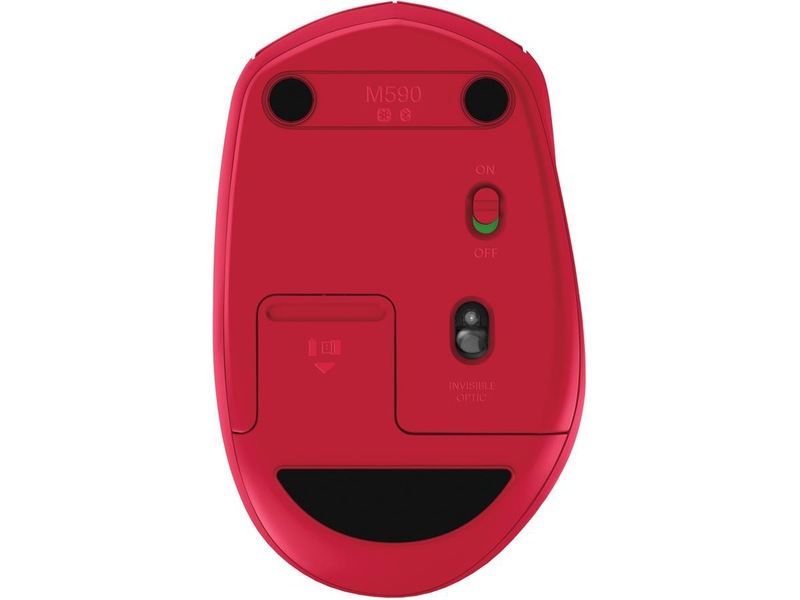 Logitech M590. Formfaktor: Høyre hendt. Bevegelsesdetektor-teknikk: Optisk, Enhetsgrensesnitt: RF Wireless+Bluetooth, Bevegelsesoppløsning: 1000 DPI, Trykknapp type: Pressed buttons, Antall knapper: 7, Rulletype: Hjul. Strømkilde: Batterier. Musvekt: 101 g. Produktfarge: Rød