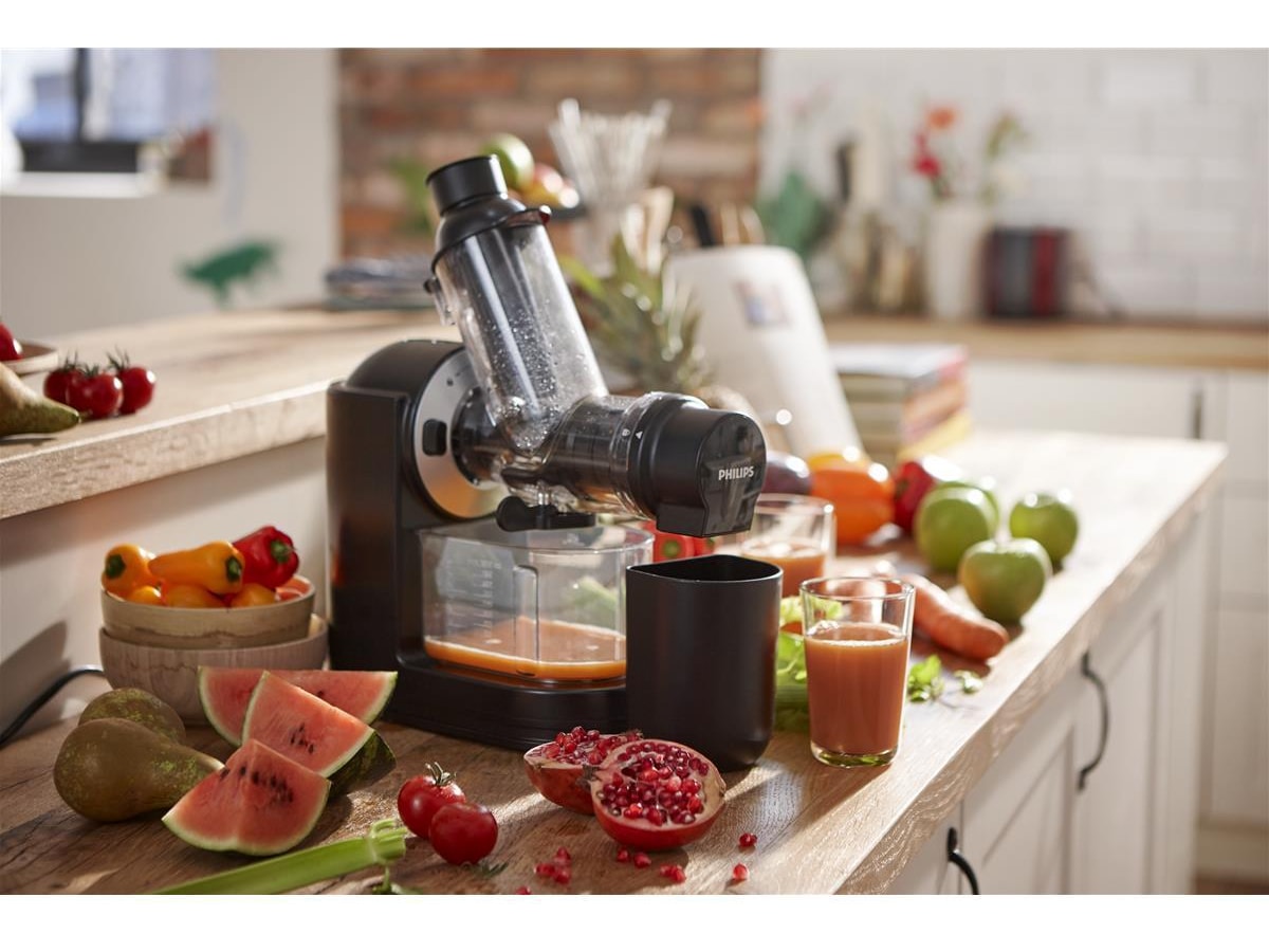 Drikk din daglige dose med sunn juice. Philips slowjuicer er den optimale juicemaskinen.