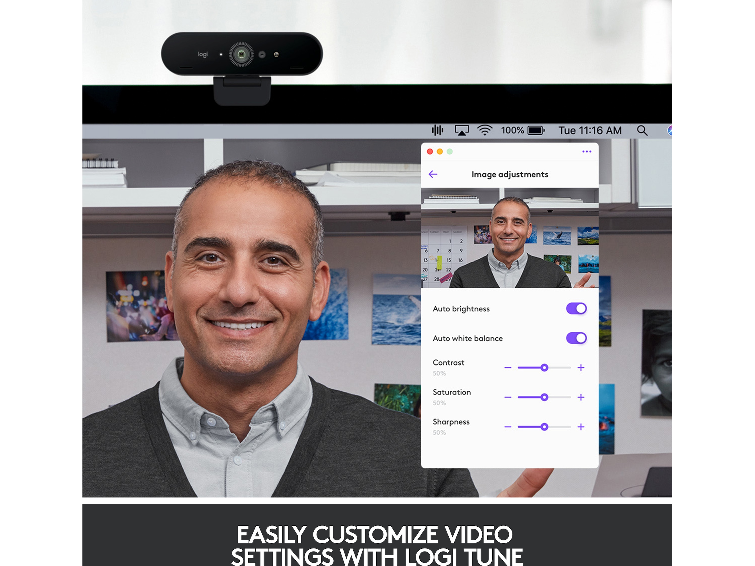 BRIO STREAM er klar for strømming og opprettholder en høy bildehastighet uten forsinkelser uansett belysning, så du kan matche kringkastingen av spillingen. Videosamtalekvaliteten er også imponerende, med utrolig skarpe bilder, jevne bevegelser og naturlige farger. Juster synsfeltet fra en bredde på 90° som fanger opp mer bakgrunn, til en smalere visning på 65 eller 78° som fokuserer på deg.