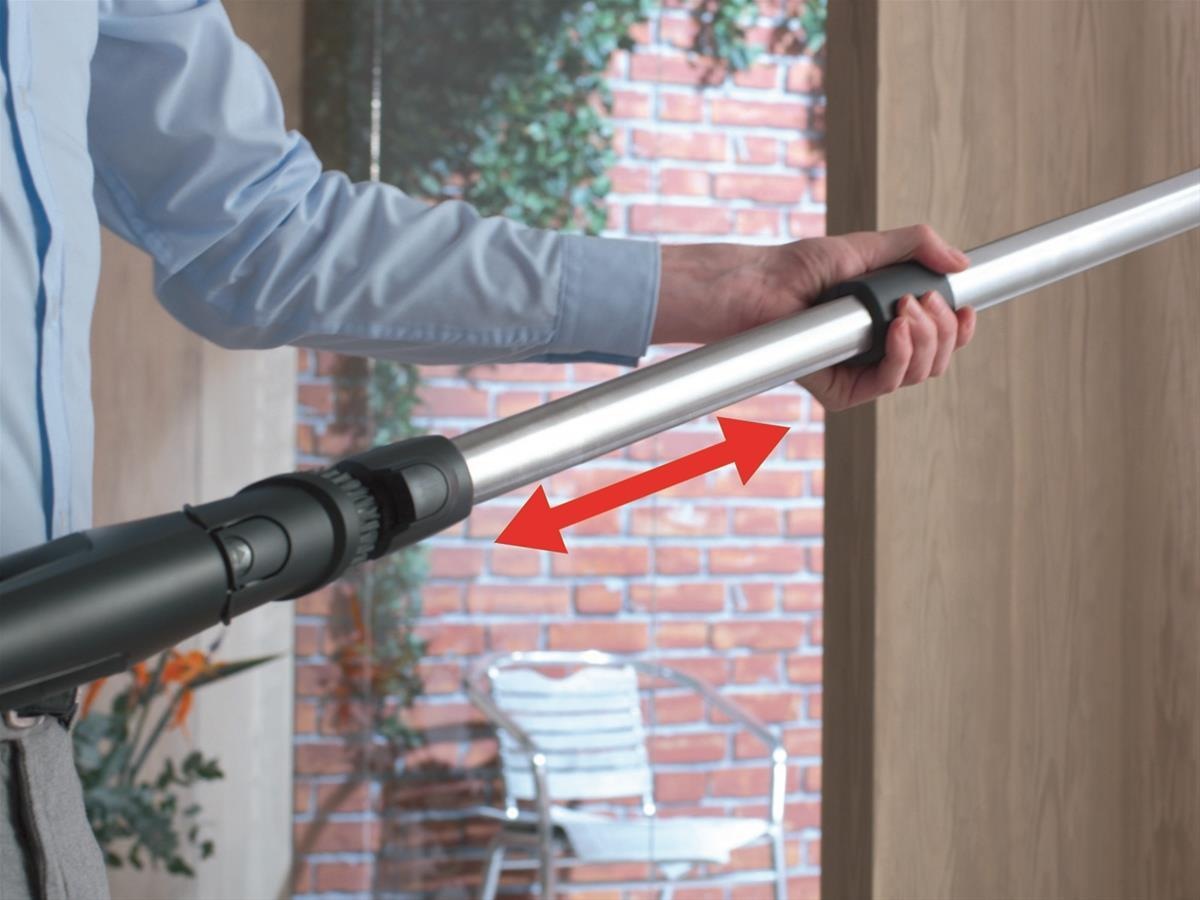 Miele Complete C3 PowerLine er utstyrt med Comfort-teleskoprør, som enkelt kan trekkes ut til ønsket betjeningshøyde. Den forstørrede diameteren øker volumet av luftstrømmen, og gir dermed fremragende rengjøringsresultater.