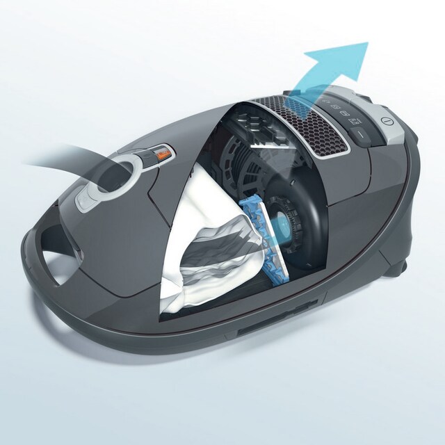 Takket være Mieles filtersystem filtreres mer enn 99,9 prosent av svevestøvet i hjemmet - og sørger for at luften som blåses ut er renere enn den som tas inn. Denne modellen er utstyrt med AirClean-filter, som gir perfekt filtereffekt tilpasset daglige behov.