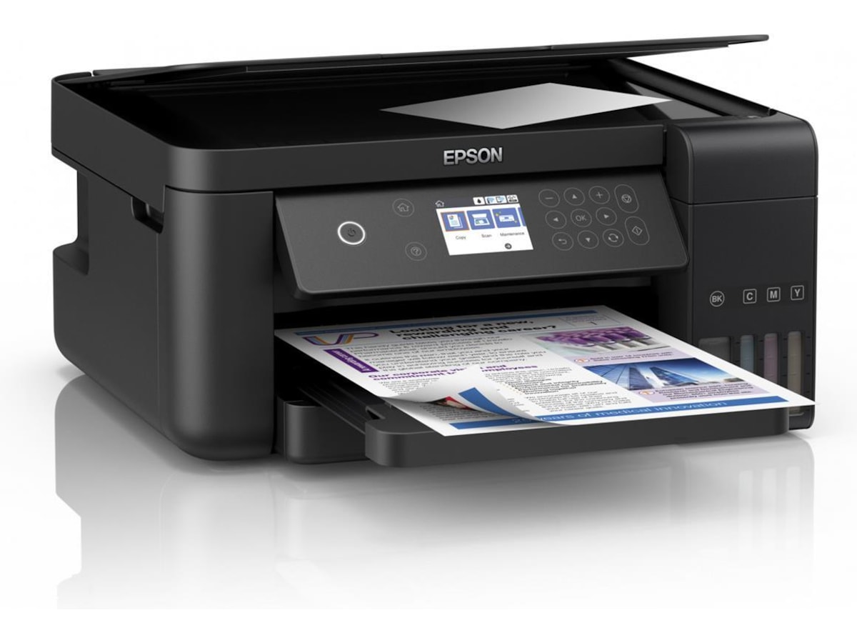 Finn ut hvordan du kan redusere utskriftskostnadene med imponerende 74 % i gjennomsnitt¹ med denne 3-i-1-blekkskriveren uten blekkpatroner med Wi-Fi og Wi-Fi Direct. Den sørger for svært lave kostnader per side ettersom det inkluderte tre års forbruket av blekk² kan skrive ut 14 000 sider i svart-hvitt og 11 200 i farger³. Den er utformet for bedrifter, med PrecisionCore-skrivehode, utskriftshastighet på 15 sider i minuttet⁴, tosidig utskrift og 150-arks frontskuff.
