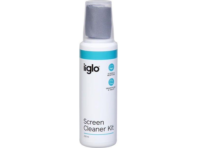 Hold skjermen ren og klar for visning. iiglo rengjøringsspray er en rensevæske med en kraftig formel spesielt utviklet for skjermer og passer utmerket til LCD, plasma, glass og LED. Sprayflasken kommer med en mikrofiberklut (19x19 cm). Denne er praktisk pakket inn i flaskens lokk, dermed vil du alltid ha det du trenger for en ren og klar skjerm lett tilgjengelig.