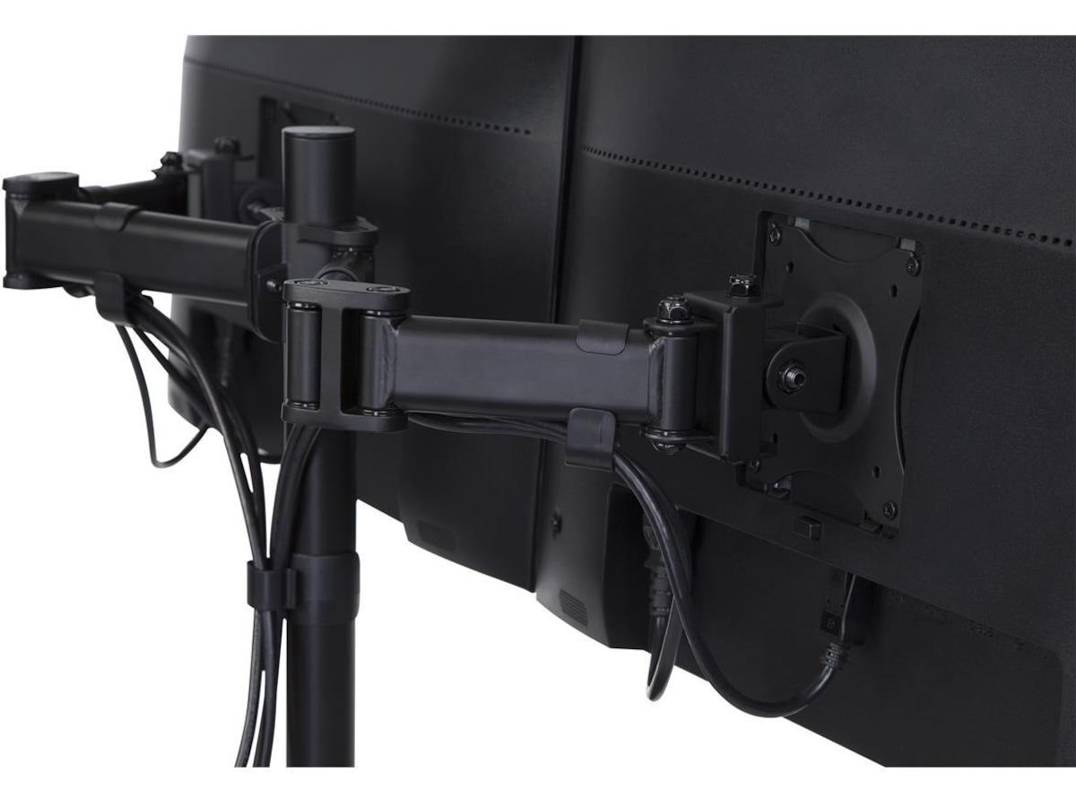 Dette skjermfestet/stativet lar deg montere to skjermer sammen på skrivebordet. Skjermene kan vinkles, roteres og vippes individuelt. Høyden på skjermene er også justerbar. iiglo-festet kan plasseres frittstående med et stabilt stativ eller festes med en C-klemme på skrivebordet ditt. Det leveres med en 75/100 mm VESA-plate, som gjør det enkelt å installere de fleste skjermer på 13–27".