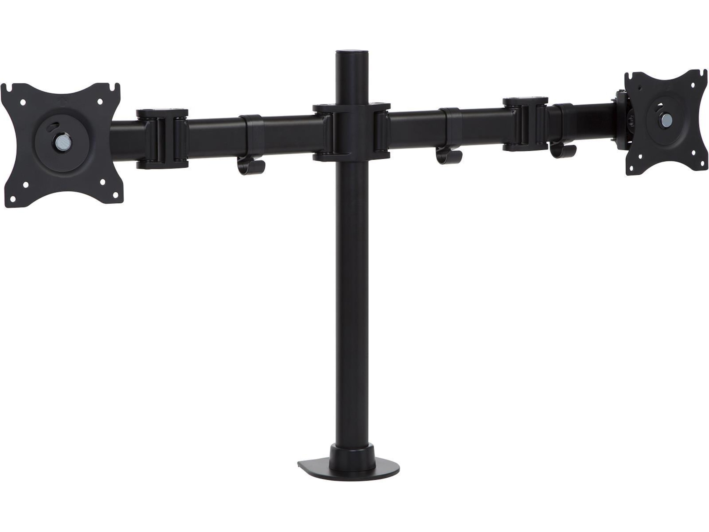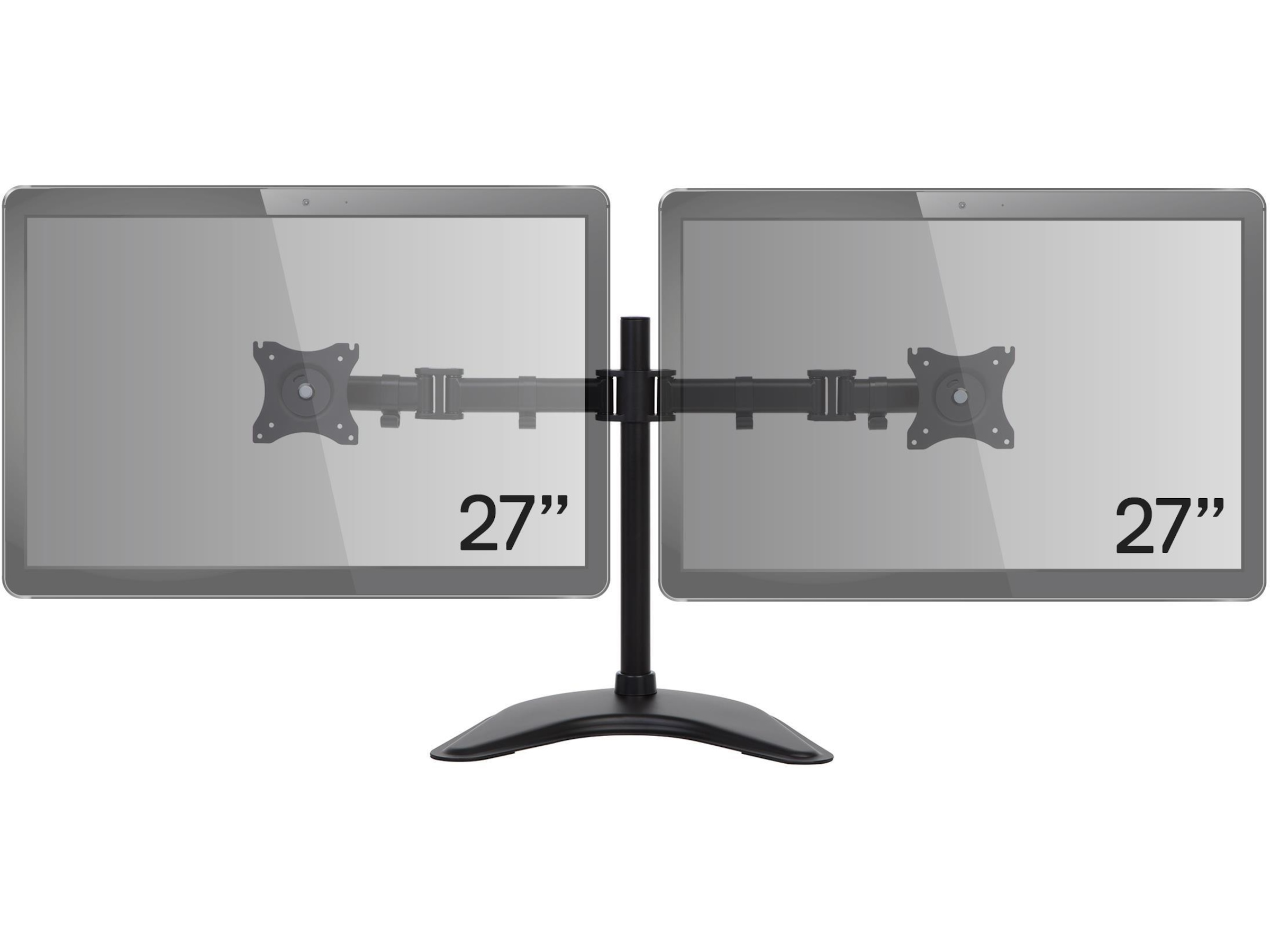 Dette skjermstativet leveres med en 75/100 mm VESA-plate med 360-graders rotasjon. Det lar deg sette skjermene i enten liggende (horisontal) eller stående visning (vertikal).