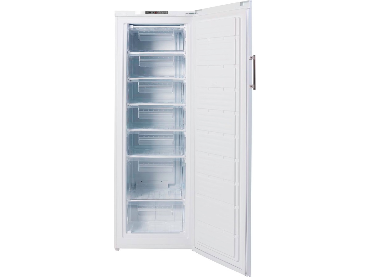 7 romslige skuffer med gjennomsiktige fronter gir deg god oversikt over fryseskapets innhold – så du enkelt ser hva du til enhver tid har liggende i fryseren. Skuffene teas lett ut ved rengjøring. Dette skapet har manuell avriming.