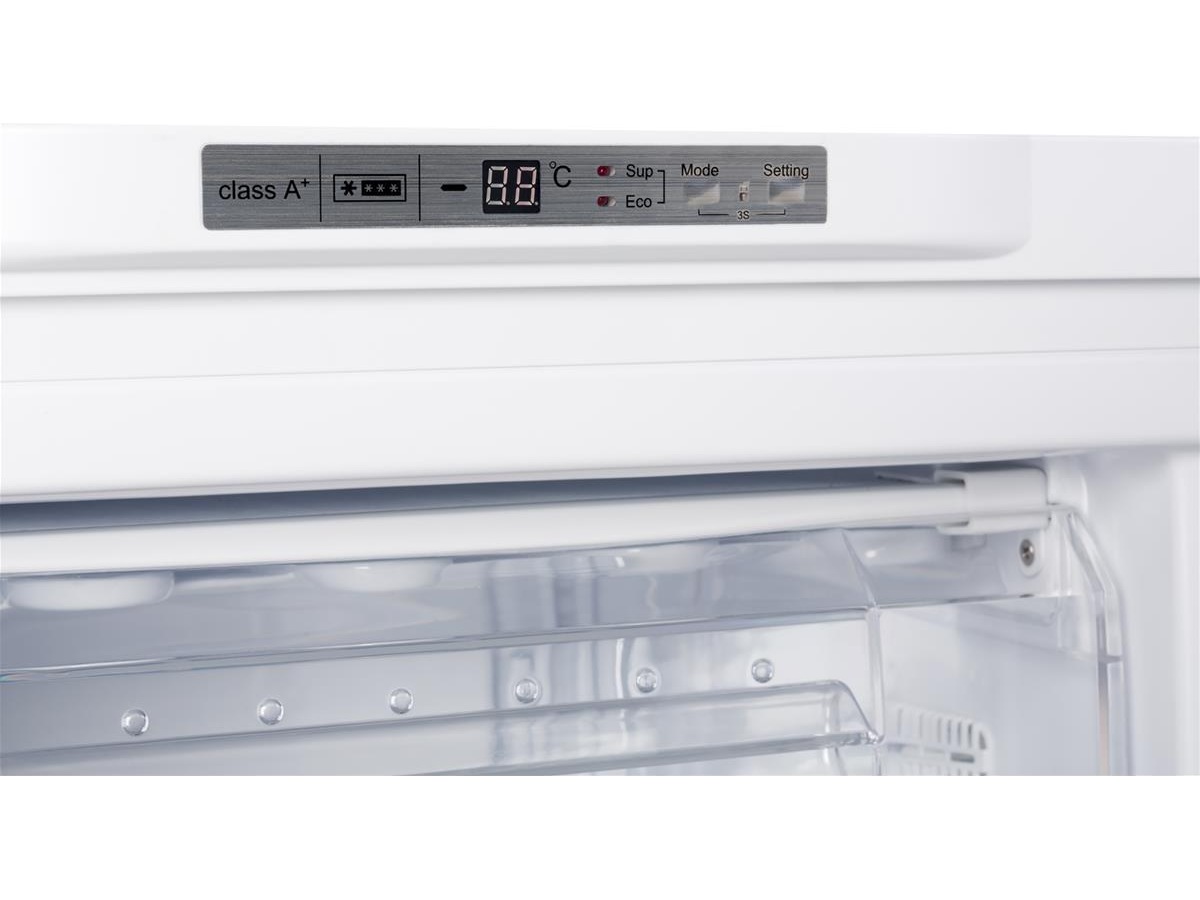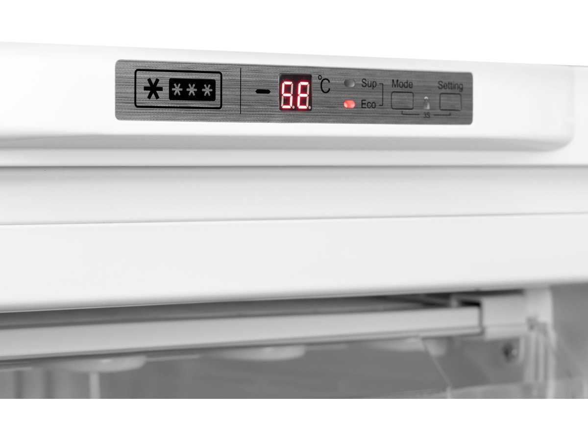 Temperatur og innstillinger styres via et kontrollpanel LED-display. Her kan du også velge mellom ulike frysemodus. Blant annet en super-innfrysningsmodus som er perfekt for hurtig innfrysning av større kvanta.